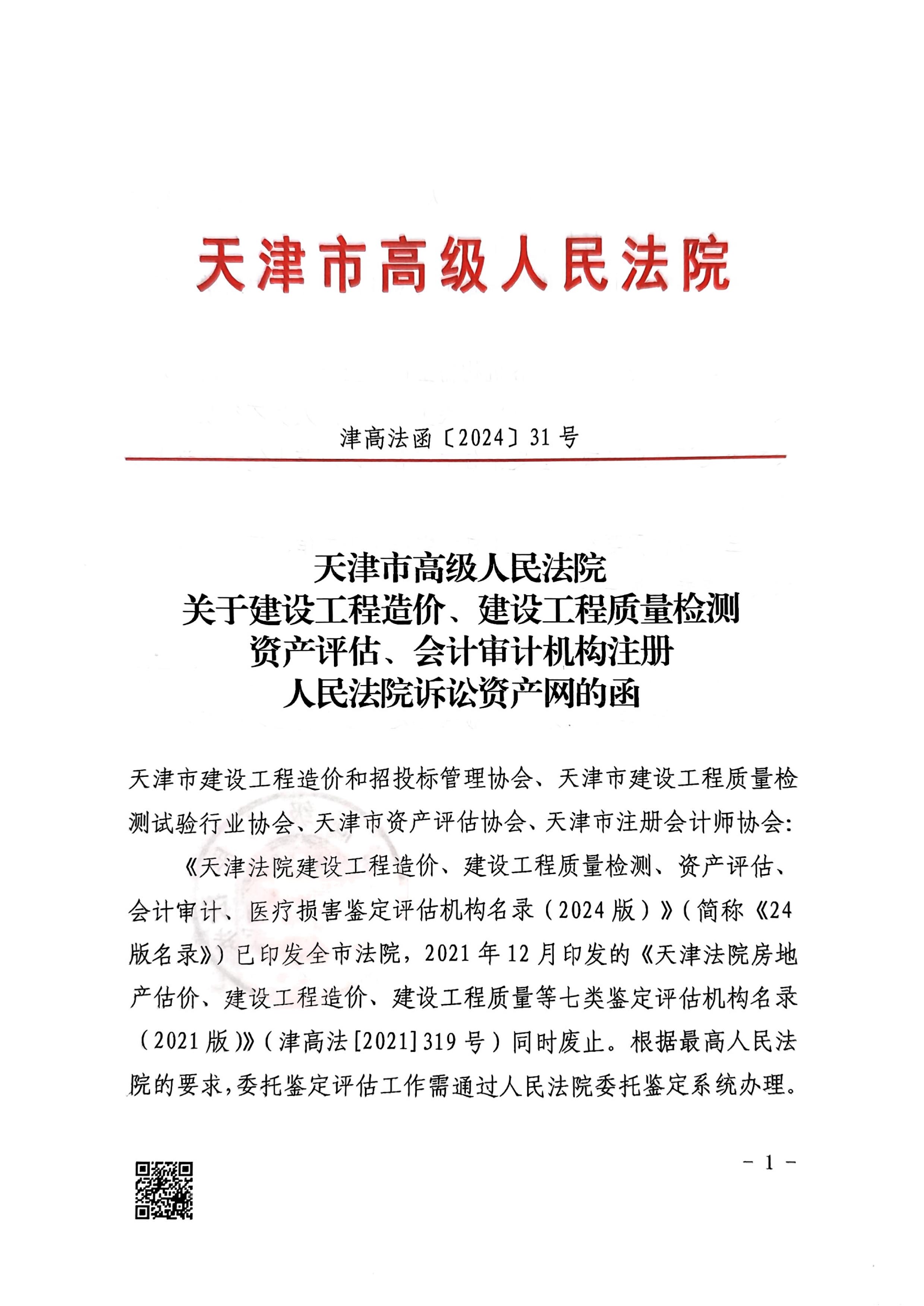 1.天津法院建設工程造價類鑒定評估機構名錄